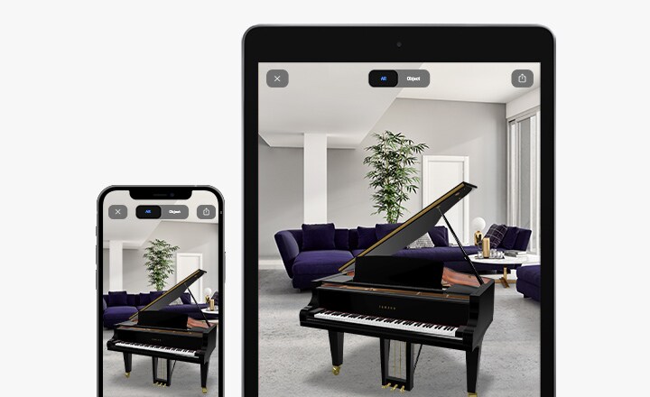 Dzięki Piano AR możesz teraz zobaczyć, jak wyglądałby fortepian/pianino Yamaha w Twoim pokoju. Obracaj i umieszczaj realistyczne modele 3D w dowolnym miejscu lub wybierz różne opcje wykończenia, aby zobaczyć, jak instrument będzie pasował do wystroju wnętrza.