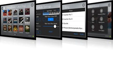 Dotknij ekranu, aby ustawić tryb „Dual” (nakładanie na siebie dwóch różnych brzmień) lub „Split” (podział klawiatury na lewą i prawą stronę i przypisanie do każdej z nich niezależnych brzmień) w prosty i intuicyjny sposób. Konfiguracja aplikacji jest niezwykle prosta - zaznacz ""song name” na ekranie utworu oraz ""type name” na ekranie ustawień pogłosu i efektów.