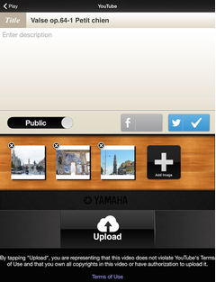 Piano Diary może również konwertować twoje nagrania MIDI w format audio. Zwyczajnie dodaj swoje ulubione zdjęcia, a Piano Diary przekonwertuje twoje nagrania MIDI w format audio, tworząc niezwykłe, oryginalne pokazy slajdów. Możesz wczytywać swoje pokazy slajdów na portal YoyTube i dzielić się swoimi wykonaniami z przyjaciółmi i rodziną!