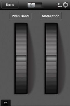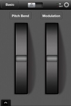 Trzymając urządzenie w orientacji pionowej możesz sterować wirtualnymi pokrętłami (pitch-bender do zmiany tonacji oraz pokrętłem modulacji). Przekręcając urządzenie (ekran w orientacji poziomej) możesz sterować padem XY.
