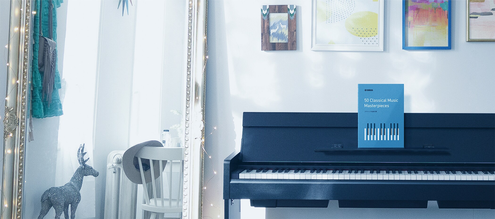 YDP-S34 posiada zintegrowaną bibliotekę klasycznych utworów na fortepian. Naucz się jak grać ikoniczne dzieła sztuki fortepianowej, dzięki książce „50 classical music masterpieces” (pol. 50 klasycznych dzieł sztuki na fortepian). Możesz także po prostu cieszyć się znakomitą muzyką, wydobywającą się bezpośrednio z Twojego instrumentu.