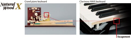 - Klawiatura NWX (Natural Wood X) z klawiszami pokrytymi syntetyczną kością słoniową