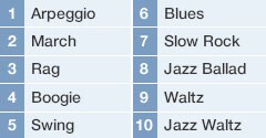 Funkcja Pianist Style zamienia twoje akordy w zachwycający akompaniament. Graj akordy a funkcja Pianist Style doda do nich pełny akompaniament. 10 wbudowanych stylów oferuje wybór, który dopasuje się do twojego wystąpienia.