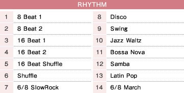 The P-115 is loaded with 14 of the most popular simple rhythm patterns. Adding a rhythm to your playing makes practice fun and fends off boredom, so that you'll keep at it. Choose your favorite rhythm from 14 popular patterns, including pop, jazz, bossa nova, and more.