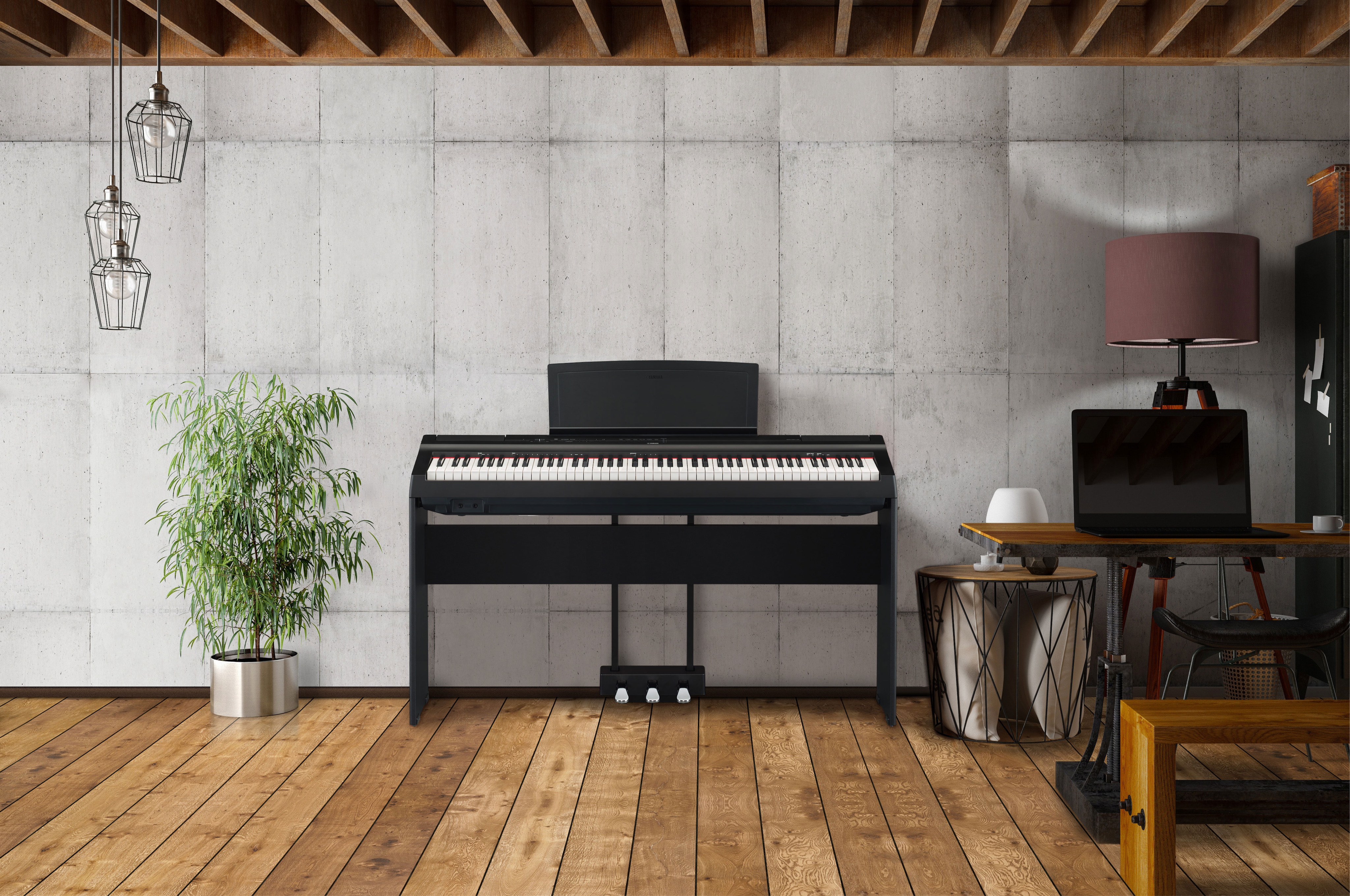 The Yamaha P-125a digital piano is so compact that its authentic, dynamic piano sound must be experienced to be believed. Featuring Yamaha’s tried-and-true 88-key GHS keyboard, this wonderful instrument delivers beautiful sounds and a satisfying acoustic piano playing experience. The slim, refined design makes the P-125a a fine addition to any room in the house. The lightweight, compact main unit fits everywhere and goes anywhere—even small live music venues. It is equipped with everything you need to practice and perform in your own way, from app compatibility to a headphone jack, preset rhythms, and more.