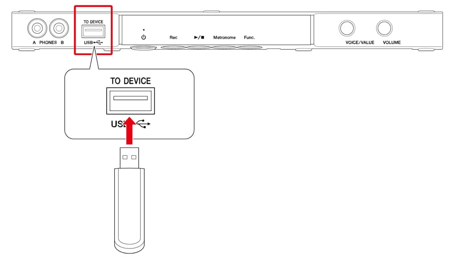 Aplikacja Smart Pianist (dostępna bezpłatnie od pobrania) umożliwia korzystanie z funkcji takich jak: wybór brzmień, intuicyjne sterowanie metronomem lub wyświetlanie akordów na Twoim urządzeniu smart.