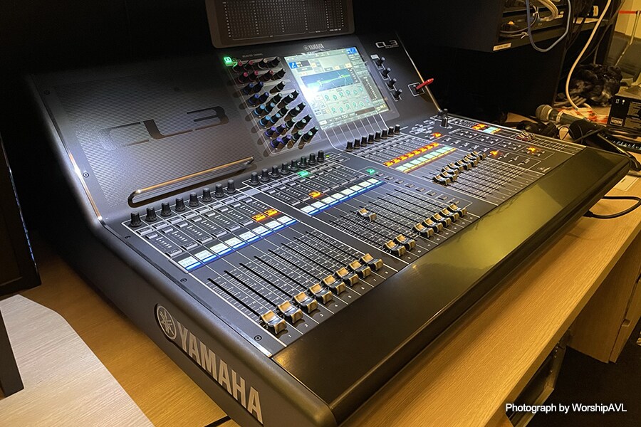 Like the Sanctuary, digital audio networking was a factor in the purchase for which the CL3 control surface is connected to a RIO3224-D2 remote I/O stage rack and two Ri8-D local inputs. Digital control management is enabled courtesy of three SWR2310-18GT Dante network switches and a Dante-MY16-AUD2 network card inserted into the DME24N digital mixing engine.