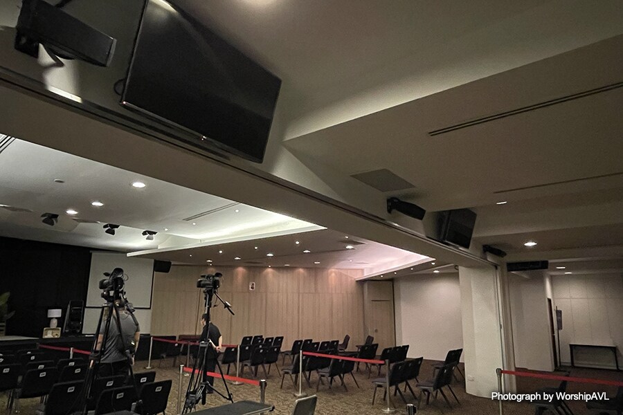 Having more than satisfied the audio requirements for everyone in the level three Sanctuary, the church committee was tasked in 2020 to specify an audio upgrade for Victory Chapel on level one. Used for Chinese, Youth (Megalife) and English services over the weekend, the 450-capacity diamond-shaped room is further complicated by a low 5.0m ceiling and a lack of acoustics. Contemporary services are accompanied by singers and musicians operating a Sennheiser G3 ew300 wireless mic system. Following a tender process, Riverlife once again nominated the winning combination of ATECH Integration Engineering and Yamaha Music Asia, Singapore.