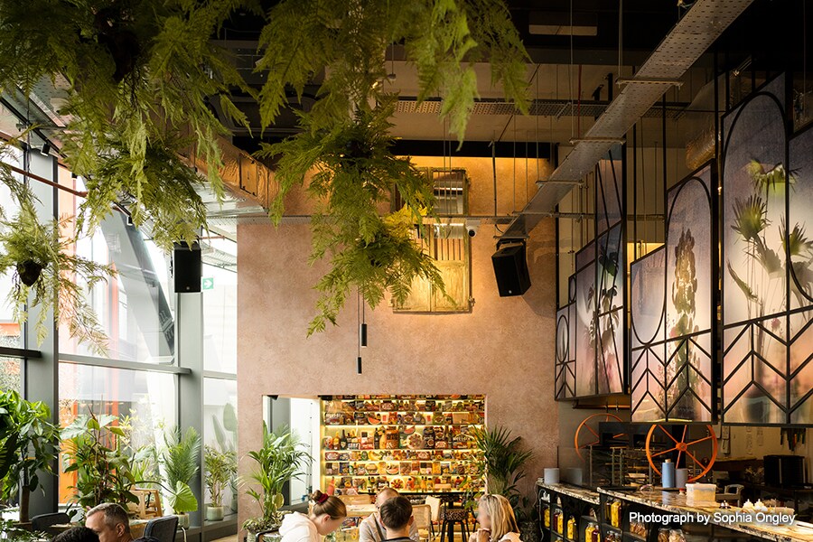 Bondi | Green is the new flagship restaurant of the Daisy | Green collection, which has brought relaxed Australian food and drink to a range of London locations. Situated on the ground floor of the Brunel Building - a recent major office development next to Paddington station - a Yamaha audio system delivers powerful but refined sound.