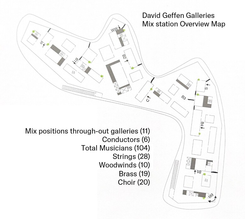 The creative concept was as unconventional as it was ambitious: allow guests to roam freely through the museum, experiencing a different sonic perspective depending on where they stood. Five stations featured a complete ensemble - grand piano, upright bass, drums, and horns - while additional sections included strings, woodwinds, brass, and a 24 - voice choir. Though every ensemble played the same piece in sync, the auditory experience constantly evolved based on the listener’s path through the space.