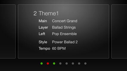 Obróć ekran urządzenia, aby przejść do trybu horyzontalnego wyświetlacza. W tym widoku przyciski pamięci registracyjnej wyświetlą swoją zawartość, na przykład brzmienia, style akompaniamentów, a także konfiguracje tempa. Nazwij dane ustawienie w górnej sekcji ekranu, aby łatwiej wyszukiwać je w przyszłości i przypisywać do odpowiednich przycisków pamięci.