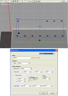 By using the distributed mode, you can arrange the speakers with a fixed spacing on a level surface. Just simply select speakers and plane types, and enter the appropriate settings. The speaker layout pattern can be chosen from “Coverage”, which automatically calculates positioning based on the coverage area of the receiving surface, or “Grid”, which places speakers on a plane surface at any interval you wish.